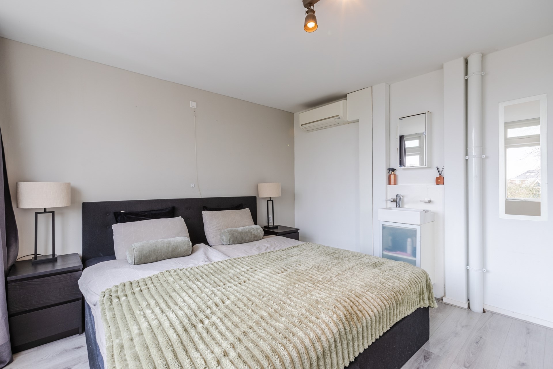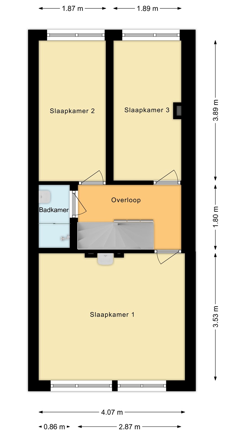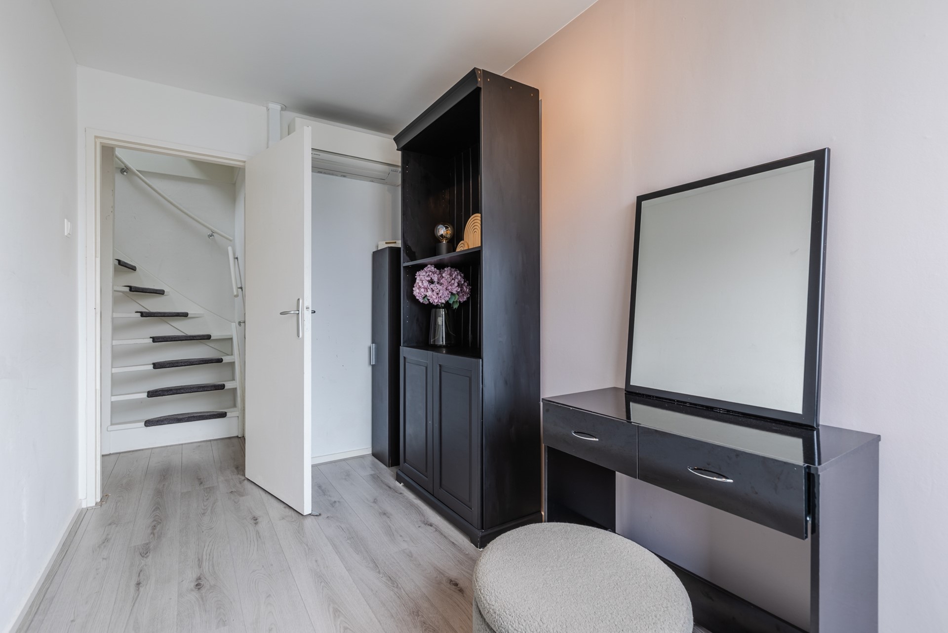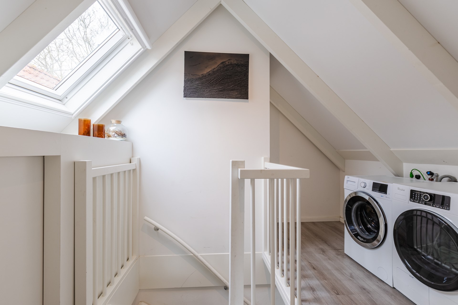 Overloop met wasmachine- en drogeraansluiting en ruime inbouwkast. Ruime 4e slaapkamer aan de achterzijde. Ruime 5e slaapkamer aan de voorzijde,