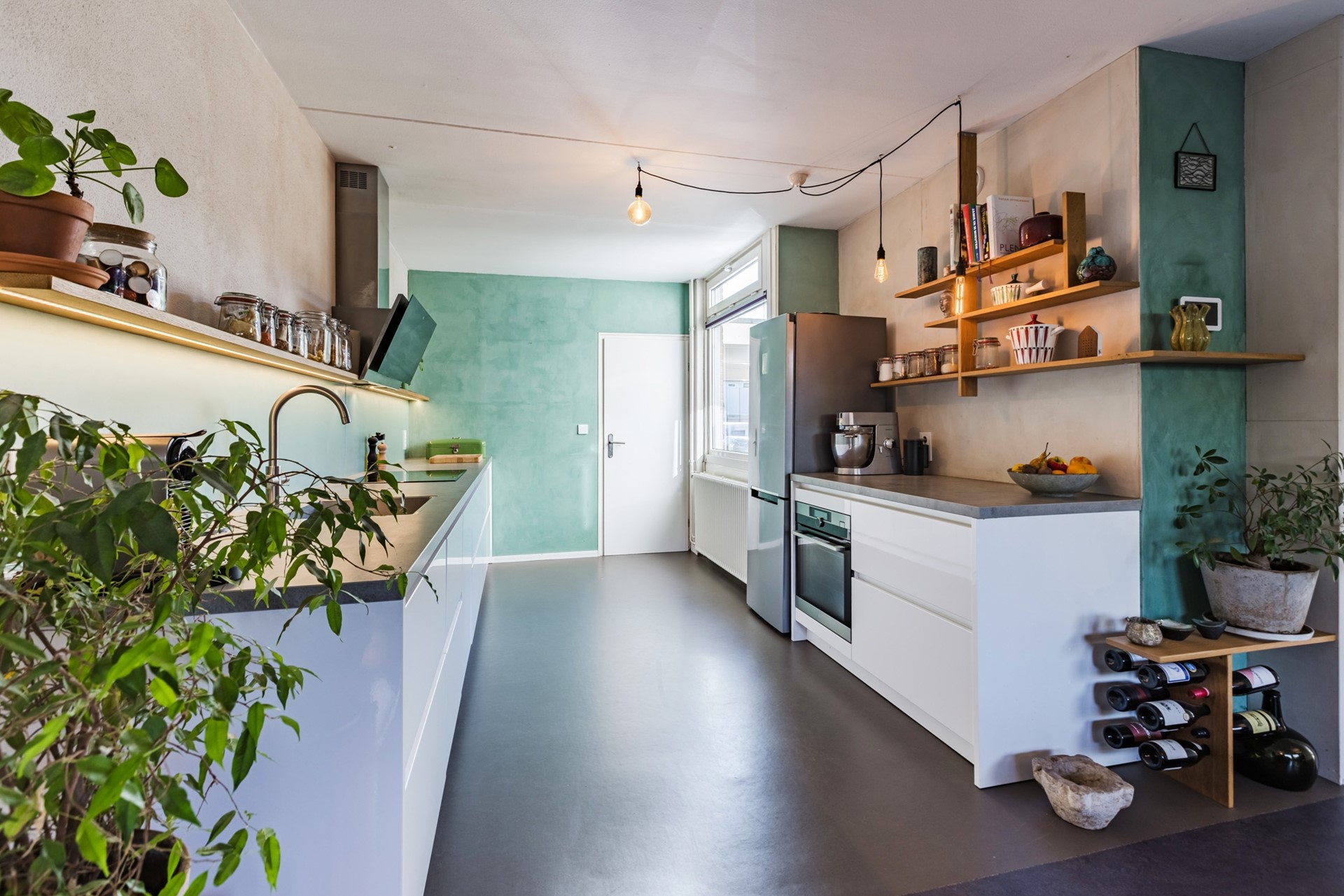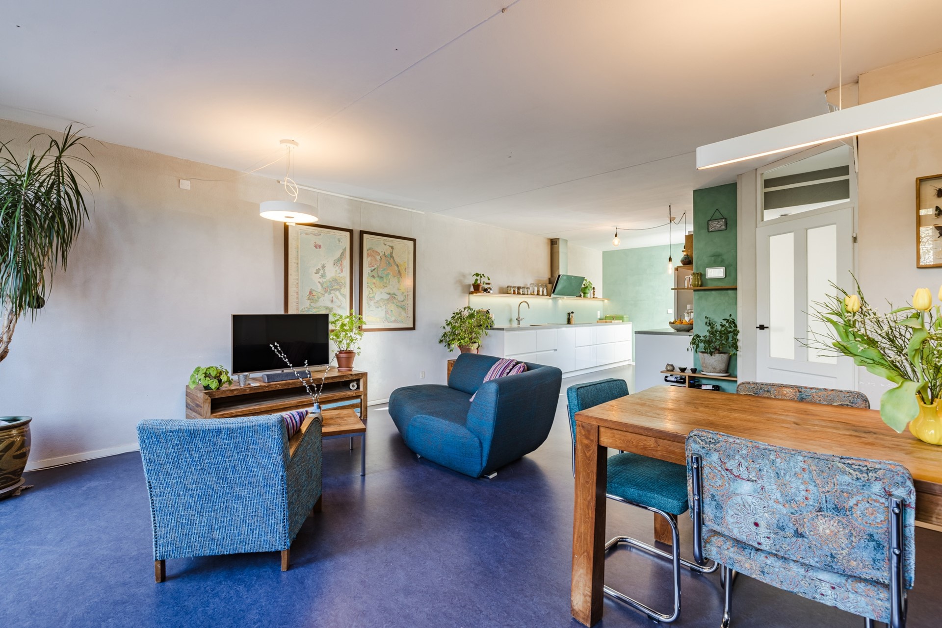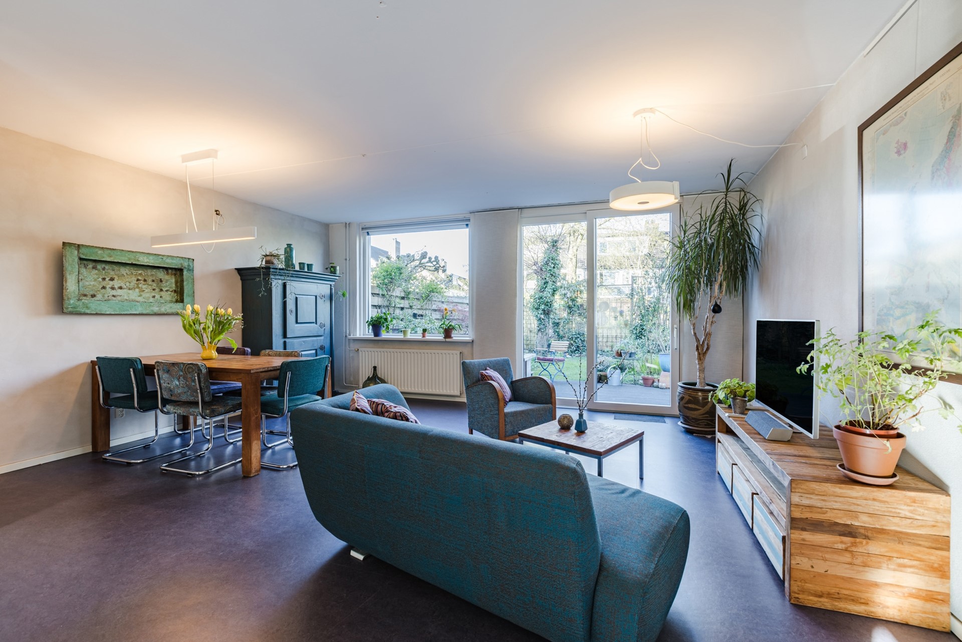 Entree, hal, garderobe, meterkast en vaste trap naar de 1e verdieping. Toiletruimte met vrijdragend toilet en fonteintje. Ruime lichte woonkamer met vloerverwarming, trapkast en schuifpui naar de zonnige tuin. Moderne open keuken 2020 met inductie kookplaat, afzuigkap, vaatwasser, kokend water kraan, stoomoven en een losse koel-vriescombinatie. Lichte bijkeuken/berging met lichtkoepel en opbergzolder.