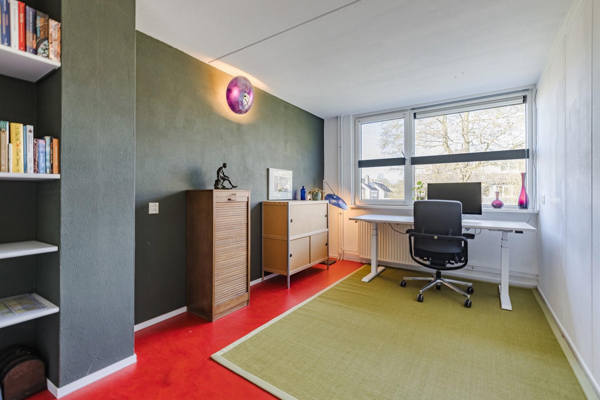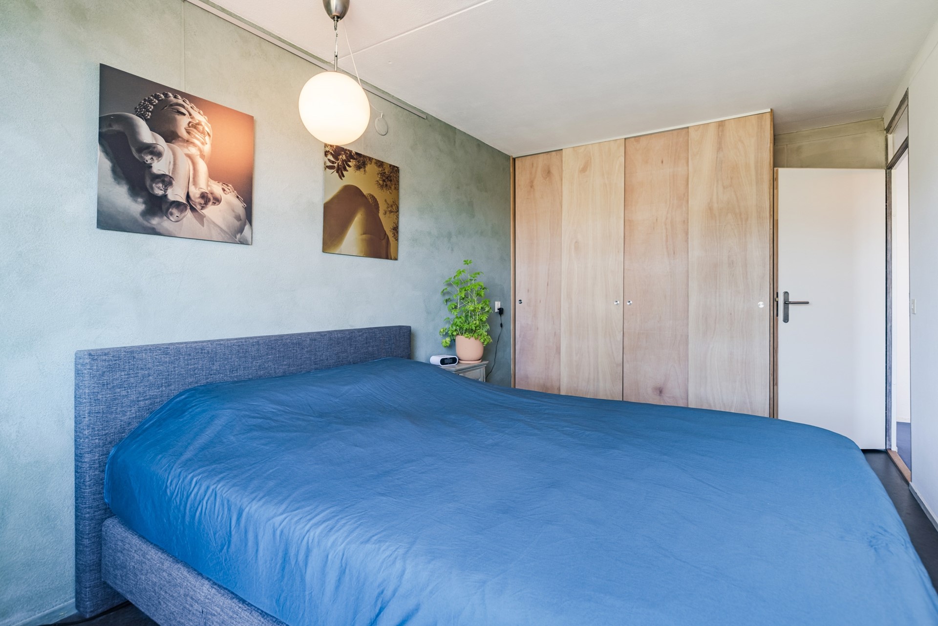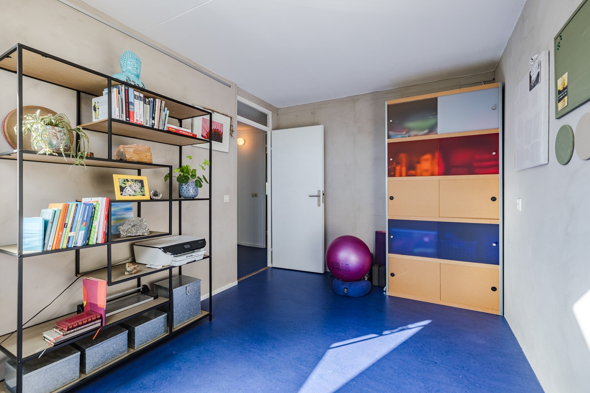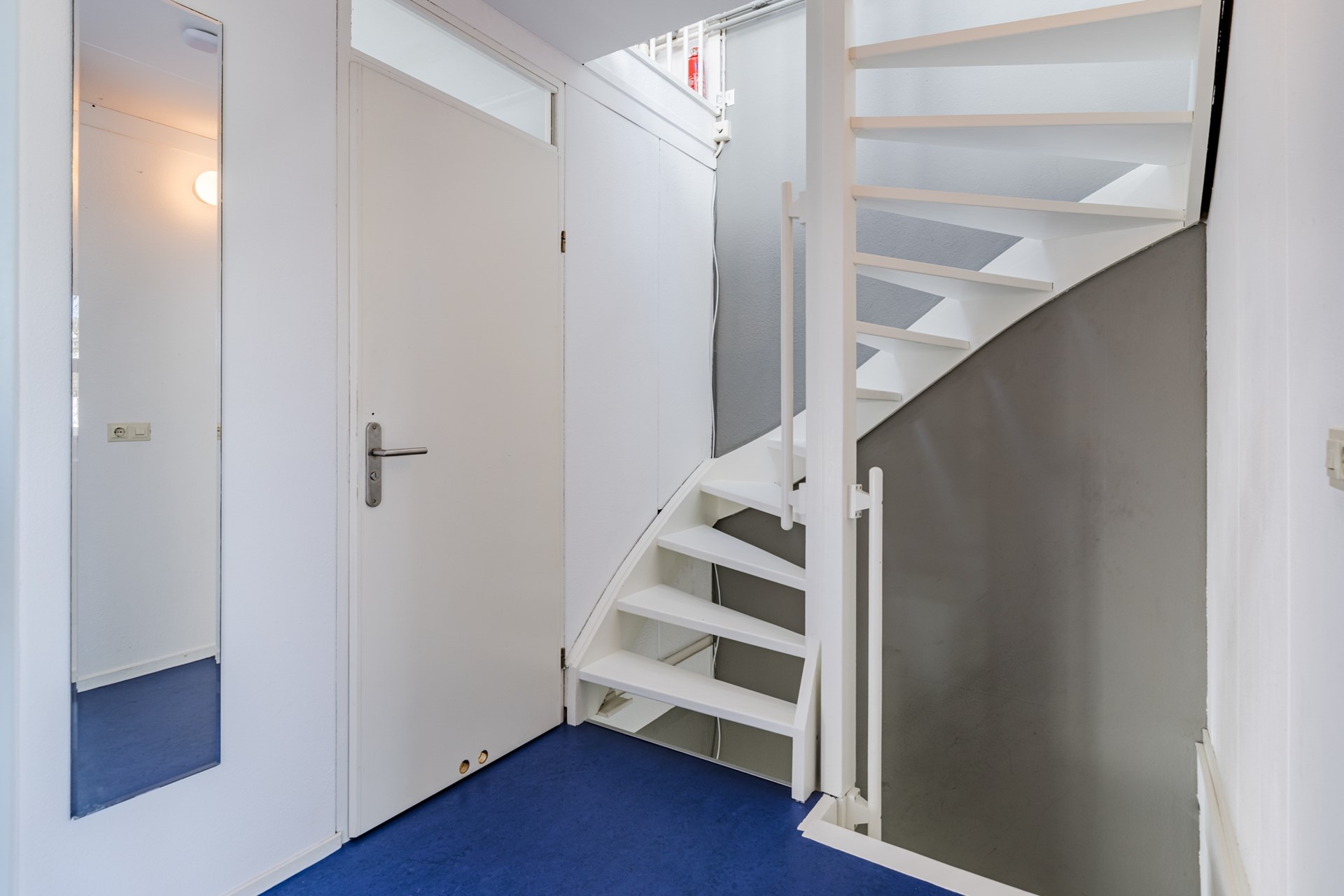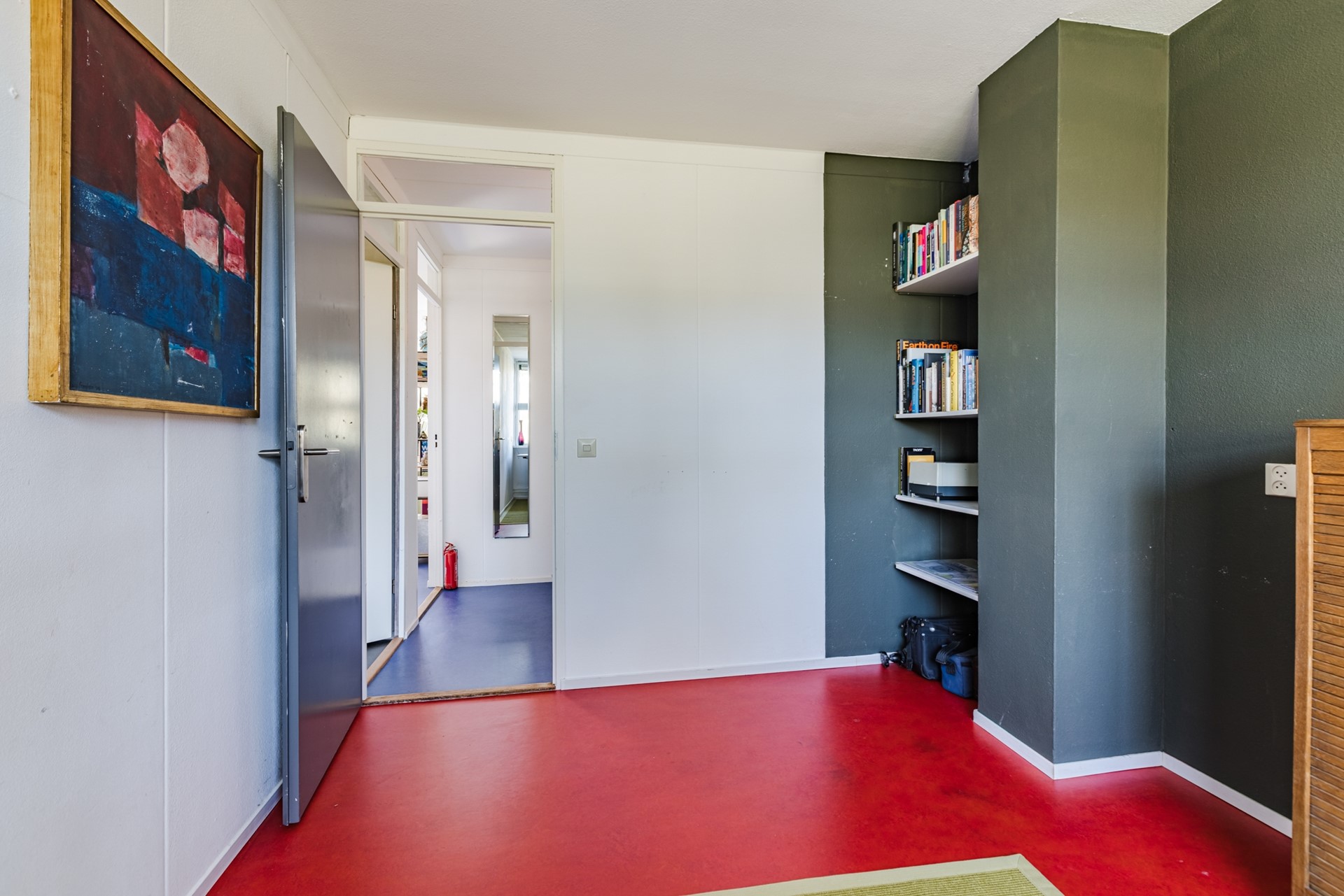Overloop met opstelplaats voor de cv combiketel Intergas 2022, elektrische boiler op zonnestroom, wasmachine- en drogeraansluiting, m.v. box en omvormer zonnepanelen. Ruime en lichte slaapkamer met 2 Velux dakramen.