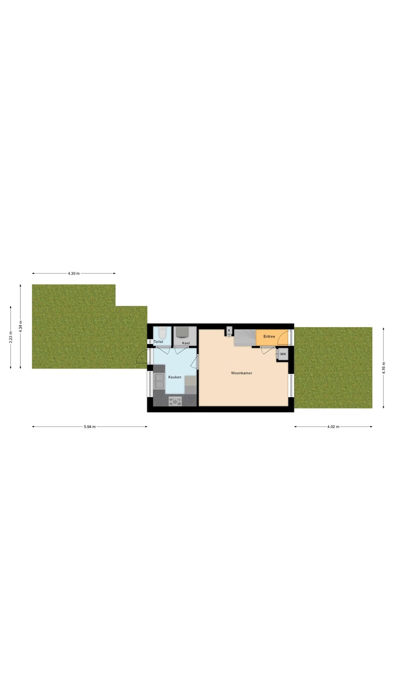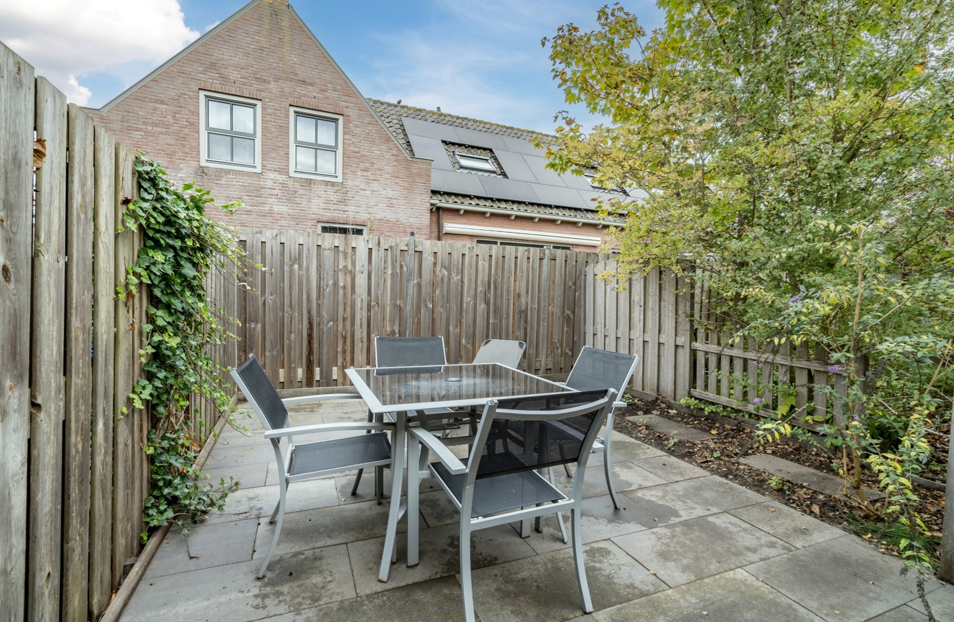 In de voortuin ligt grind en je hebt hier toegang tot de separate houten berging van ca.8 m2. Onderhoudsvriendelijke achtertuin van ca. 25m2 Op het noorden.