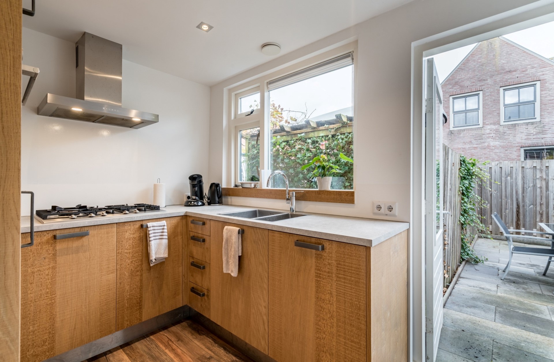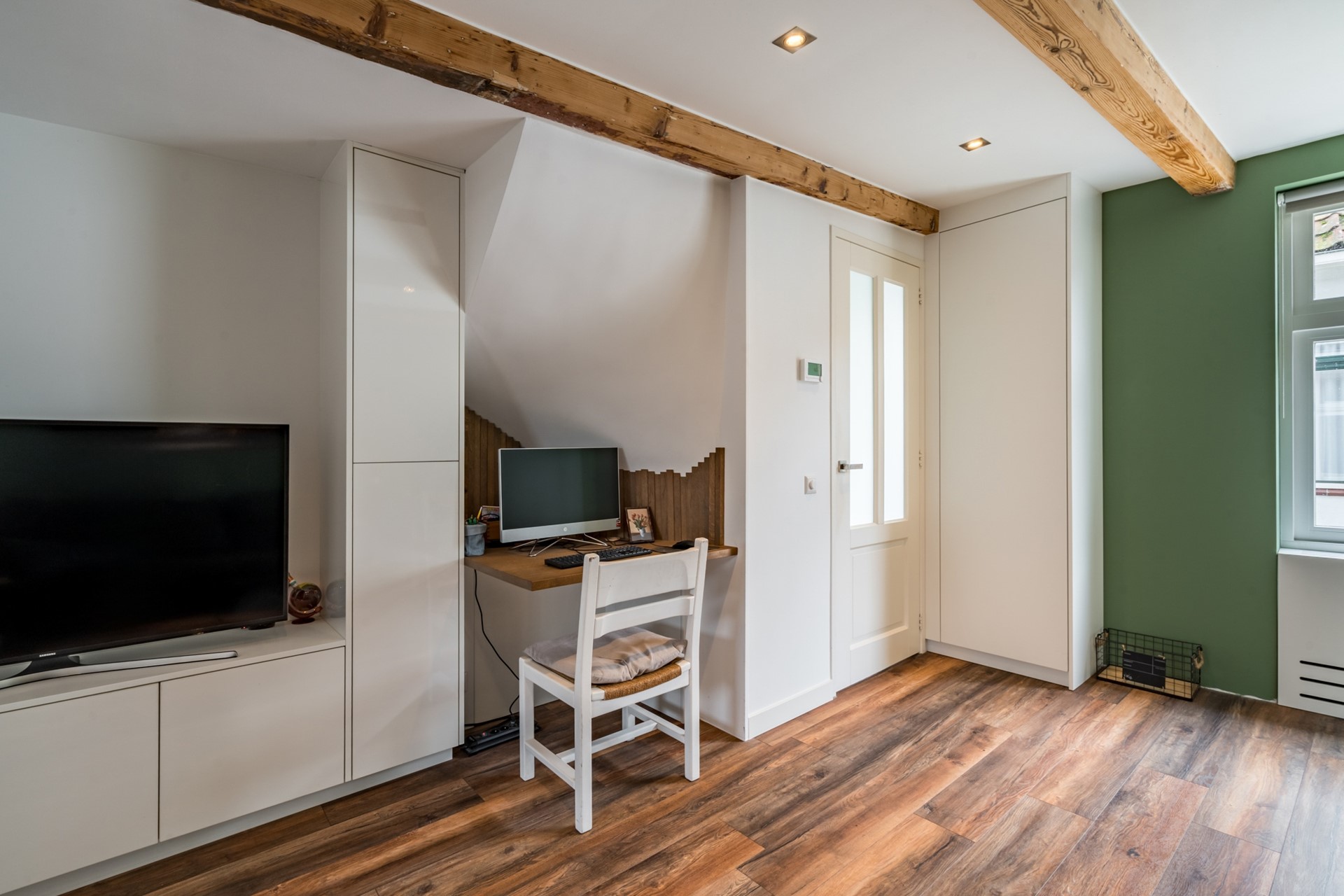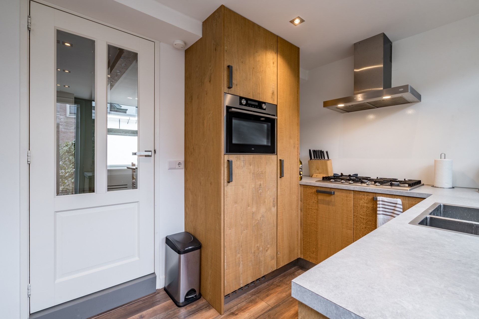 Leuke karakteristieke tussenwoning, ideaal voor starters, in het centrum van Kamerik. De woning heeft een onderhoudsvrije tuin, een berging, een moderne badkamer en keuken en een ruime lichte slaapkamer. De woning is afgelopen jaren gemoderniseerd en voorzien van zonnepanelen en dubbel glas/HR++glas. Via de entree kom je in de hal met een vaste trap naar de 1e verdieping. De hal geeft toegang tot de sfeervolle woonkamer, met meterkast, en de keuken. In de woonkamer is onder de trap een handig werkplek gecreëerd. De moderne keuken is voorzien van een 5 pits gasfornuis, afzuigkap, combimagnetron, vaatwasser en een koelkast met vriezer. Vanuit de keuken is er toegang naar de toiletruimte met hangend toilet en de wasruimte. In de wasruimte vind je de m.v. box en de wasmachine- en drogeraansluiting. Via de keuken kom je ook in de tuin. Op de begane grond ligt een betonvloer met behaaglijke vloerverwarming. Op de 1e verdieping kom je op de overloop met dakraam en cv ketel Remeha. Op deze verdieping vind je ook de moderne badkamer met een douchecabine en een wastafel. De slaapkamer is ruim en licht door de mooie dakkapellen. In de voortuin ligt grind en hier is ook de separate houten berging gelegen van ca. 8m2. De achtertuin van ca. 25m2 ligt op het noorden en is bestraat met mooie grote tegels, dat geeft veel terrasruimte en is onderhoudsvriendelijk. Kamerik maakt deel uit van de gemeente Woerden en ligt midden in het Groene Hart waar je fijn kunt wandelen en fietsen. In het dorp Kamerik zijn voldoende winkels aanwezig voor je dagelijkse boodschappen, waaronder een supermarkt, een slager en een bakker. Ook tref je hier basisscholen en diverse (sport) verenigingen aan. Via de uitvalswegen A2 en A12 zijn Amsterdam en Utrecht goed bereikbaar. Op fietsafstand zijn de NS stations in Woerden en Breukelen. Dit is je kans! Een mooie betaalbare woning op een heerlijke plek!